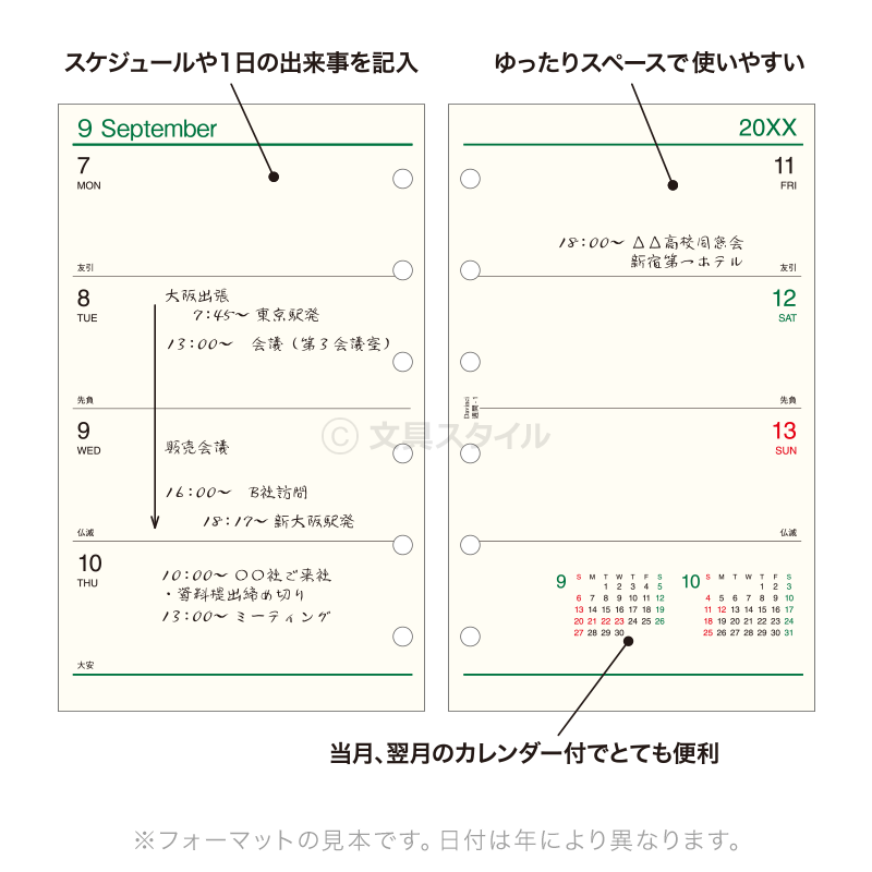 片面1週間と比べ、1日に書き込むことが出来るスペースが広いのが特長です。